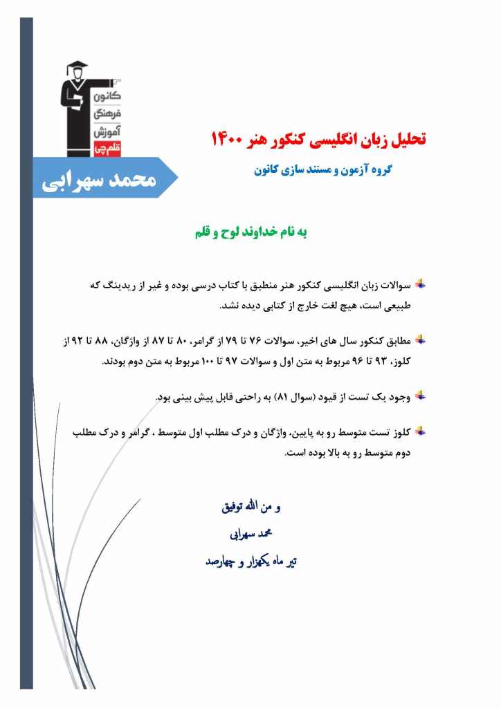 محمد سهرابی: تحلیل درس زبان انگلیسی کنکور 1400 - هنر