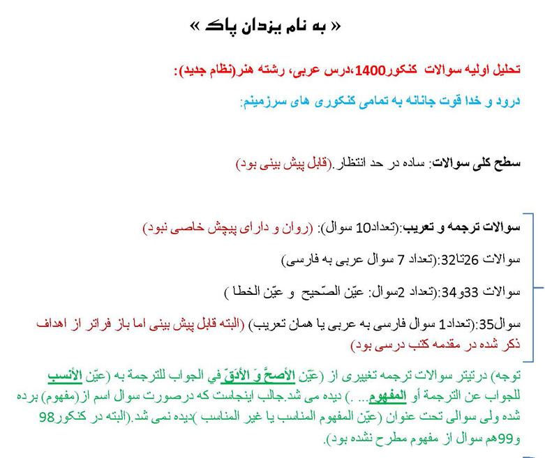 احمد برخان: تحلیل درس عربی کنکور هنر 1400