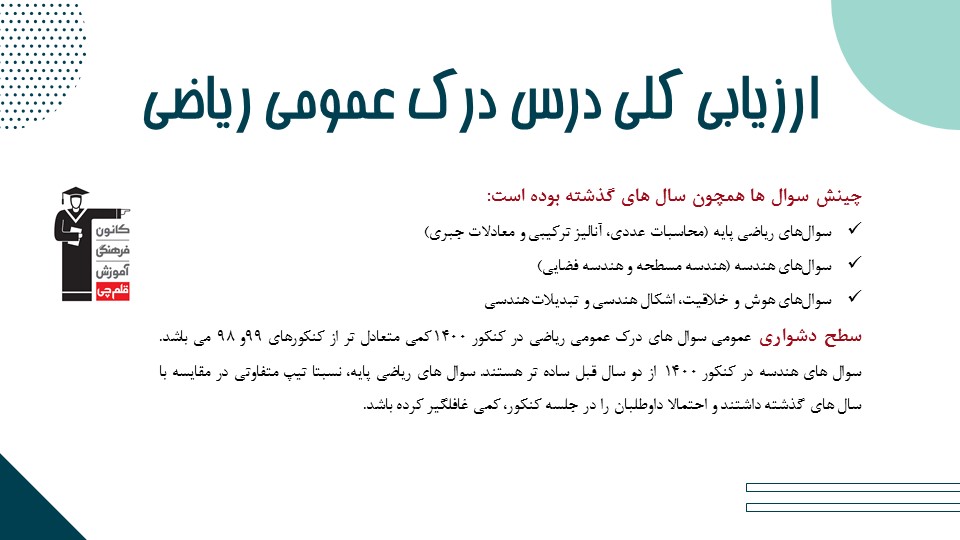 رویکرد درس درک عمومی ریاضی و فیزیک کنکور هنر 1400