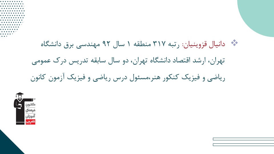 رویکرد درک عمومی ریاضی و فیزیک کنکور هنر 1400 گروه هنر. دانیال قزوینیان