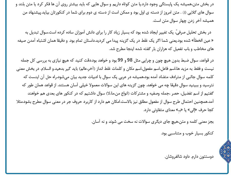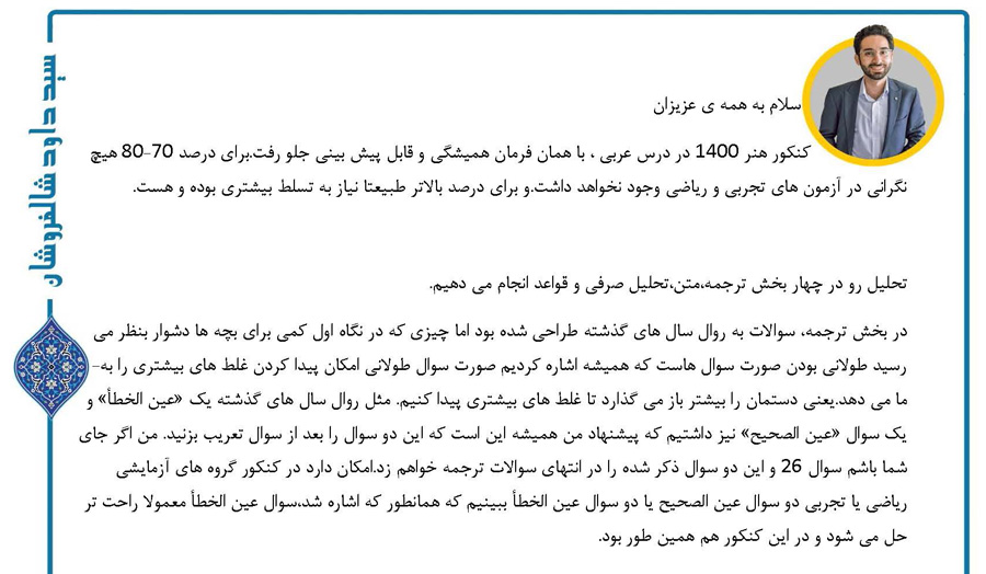 داود شالفروشان: تحلیل درس عربی کنکور هنر 1400