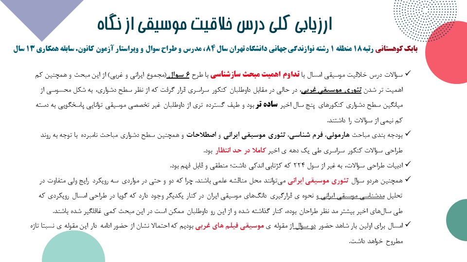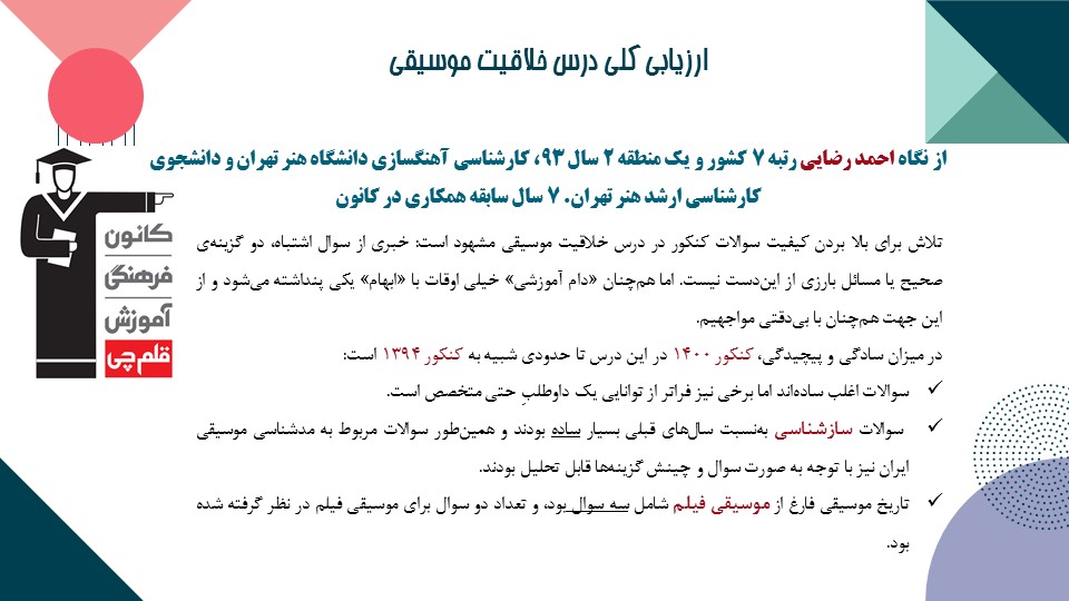 رویکرد درس خلاقیت موسیقی کنکور هنر 1400