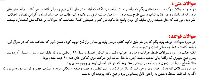 مطالب درسی کنکوری ها