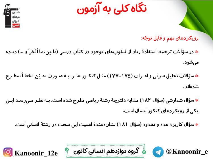 در این فایل رویکردهای درس عربی اختصاصی کنکور انسانی 1400 تحلیل و بررسی شده است.