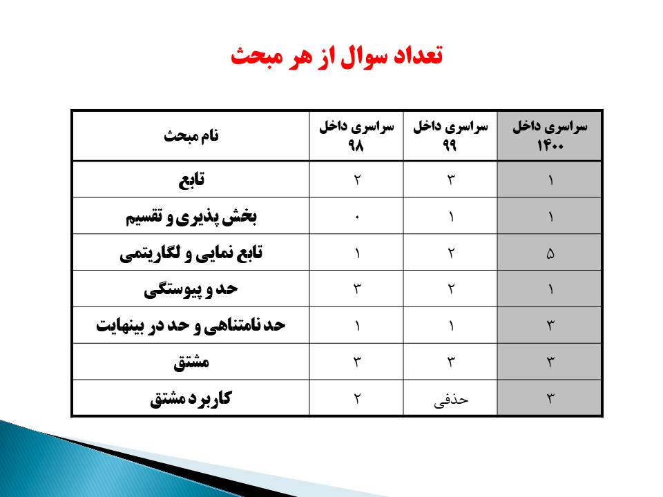 گرایشهای درس حسابان کنکورریاضی 1400- عادل حسینی است