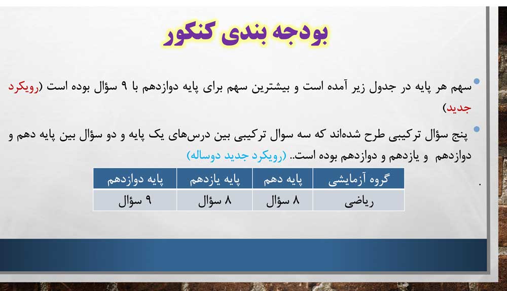 کارنامه کنکور بر اساس رشته و دانشگاه