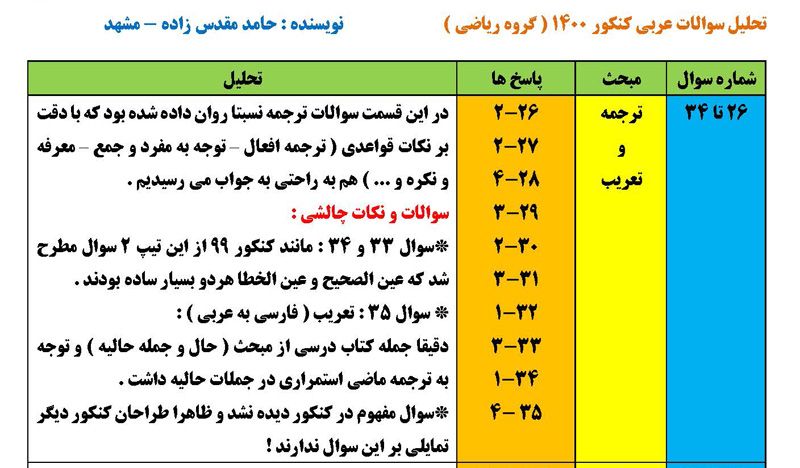 حامد مقدسزاده: تحلیل درس عربی کنکور ریاضی 1400