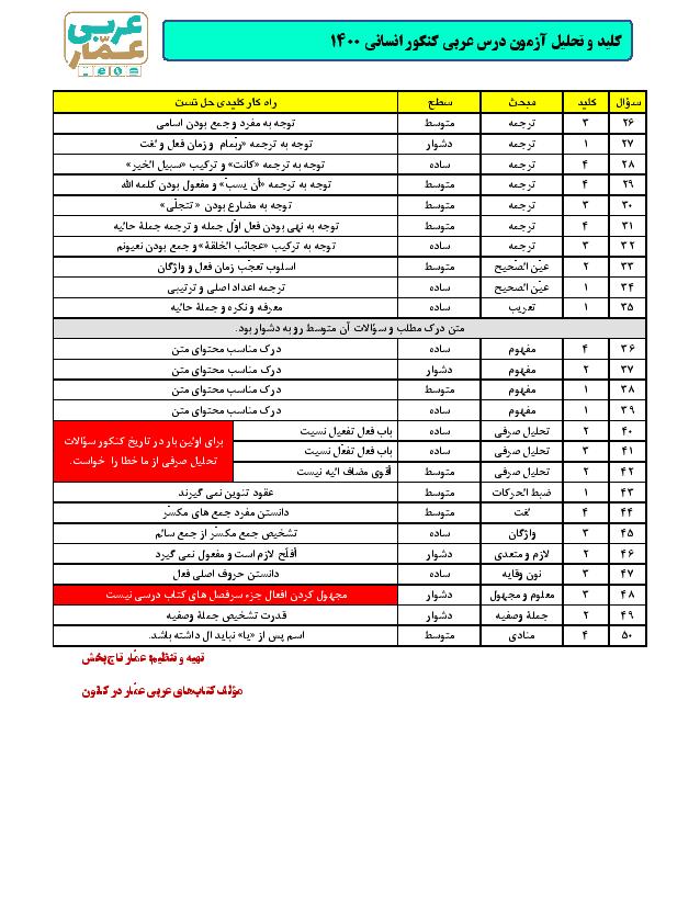 عمار تاج بخش: تحلیل عربی عمومی انسانی 1400