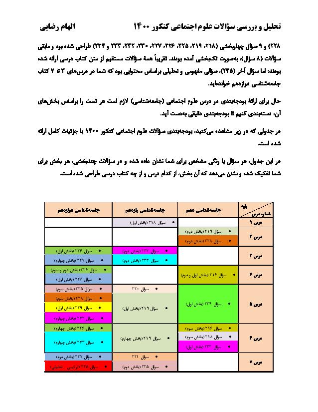 الهام رضایی: تحلیل درس علوم اجتماعی کنکور انسانی 1400