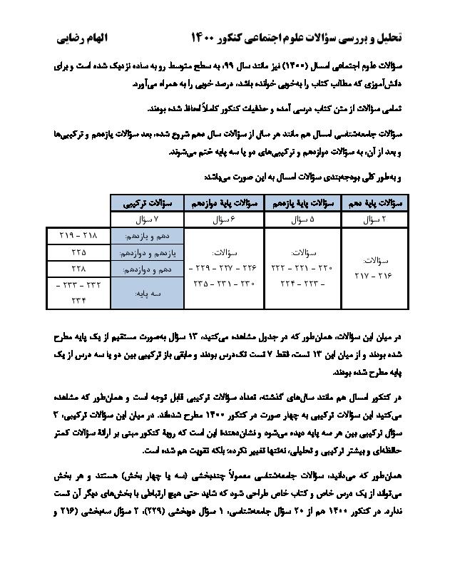 تحلیل درس علوم اجتماعی در کنکور 1400 انسانی آمده است: