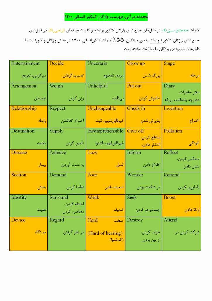در ادامه میتوانید لیست واژگان مهم کنکور انسانی 1400 را مشاهده کنید.