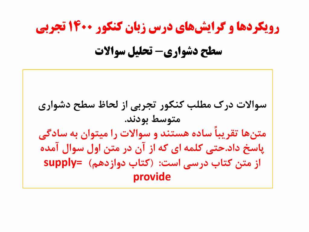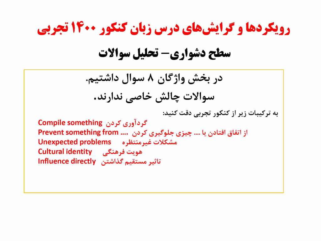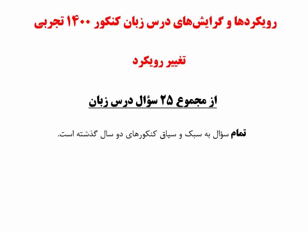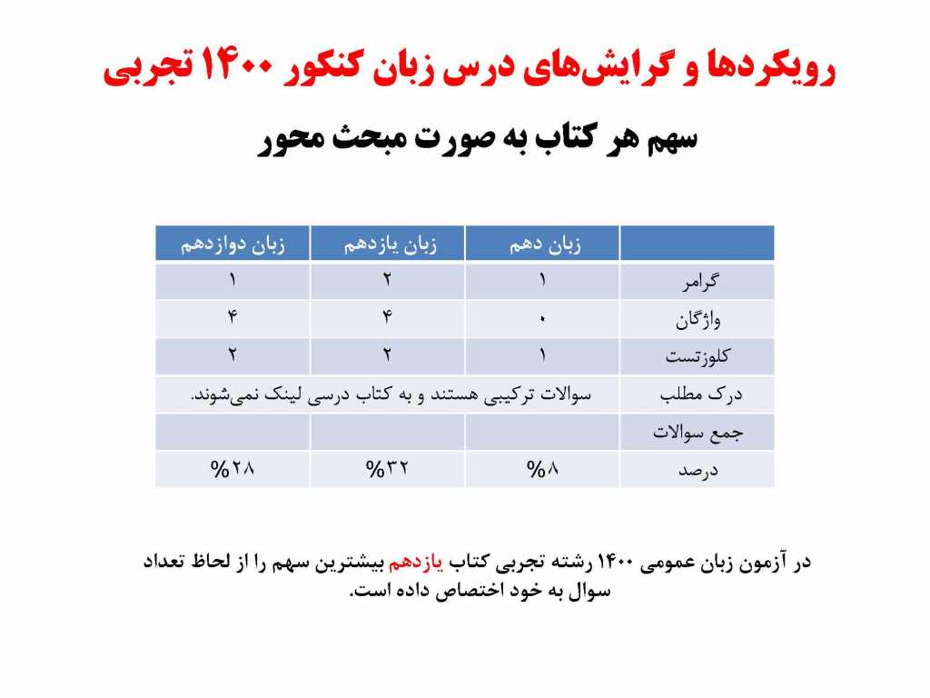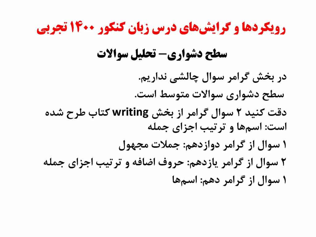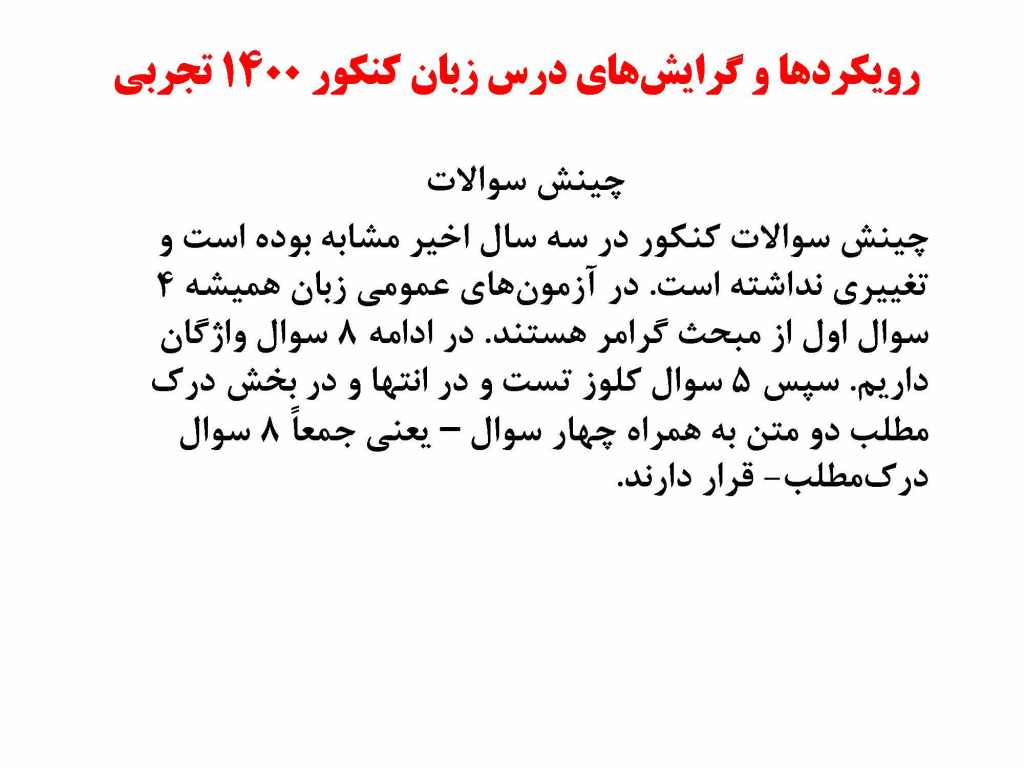 رویکردها و گرایشهای درس زبان کنکور 1400 تجربیسپیده عرب- مدیر گروه منحصراً زبان- مسئول درس زبان انگلیسی دوازدهم- رتبه 224 کنکور سراسری 90- رتبه 24 کنکور ارشد 95- کارشناسی زبان و ادبیات انگلیسی- ارشد زبانشناسی دانشگاه تهران