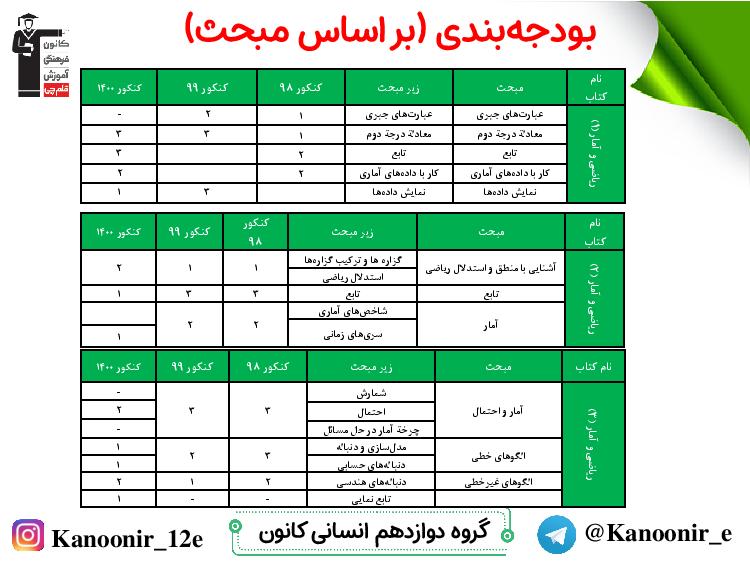 مطالب درسی کنکوری ها