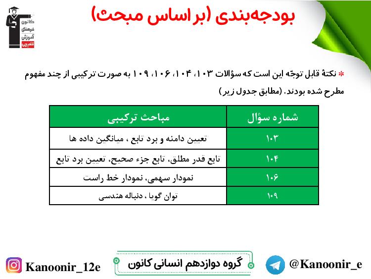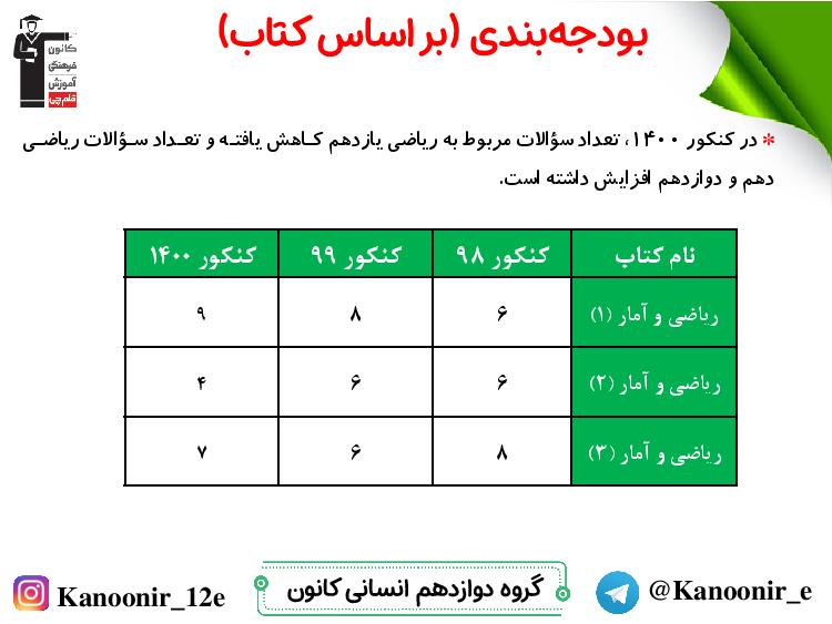 تحلیل رویکردهای درس ریاضی و آمار کنکور انسانی 1400 را در زیر مشاهده بفرمایید.