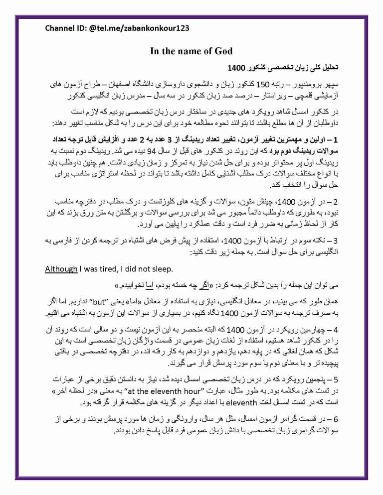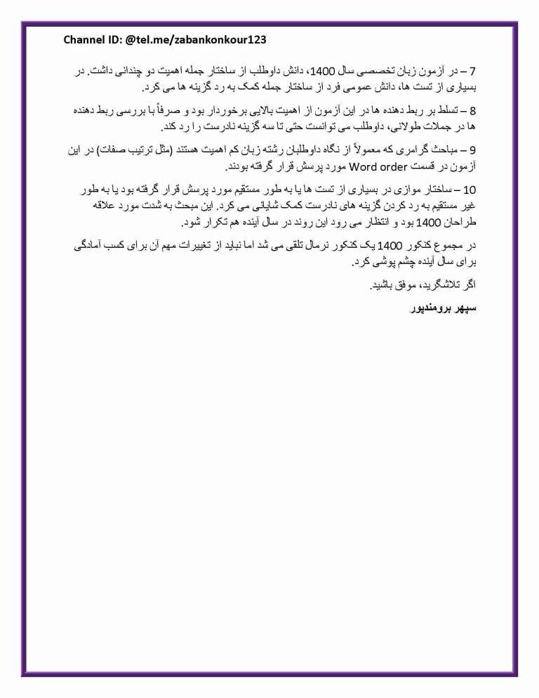 سپهر برومند: تحلیل درس زبان تخصصی کنکور 1400 - منحصراً زبان