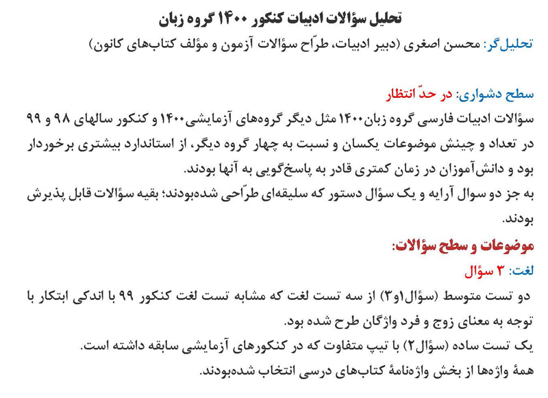 محسن اصغری: تحلیل درس ادبیات در کنکور منحصراً زبان 1400