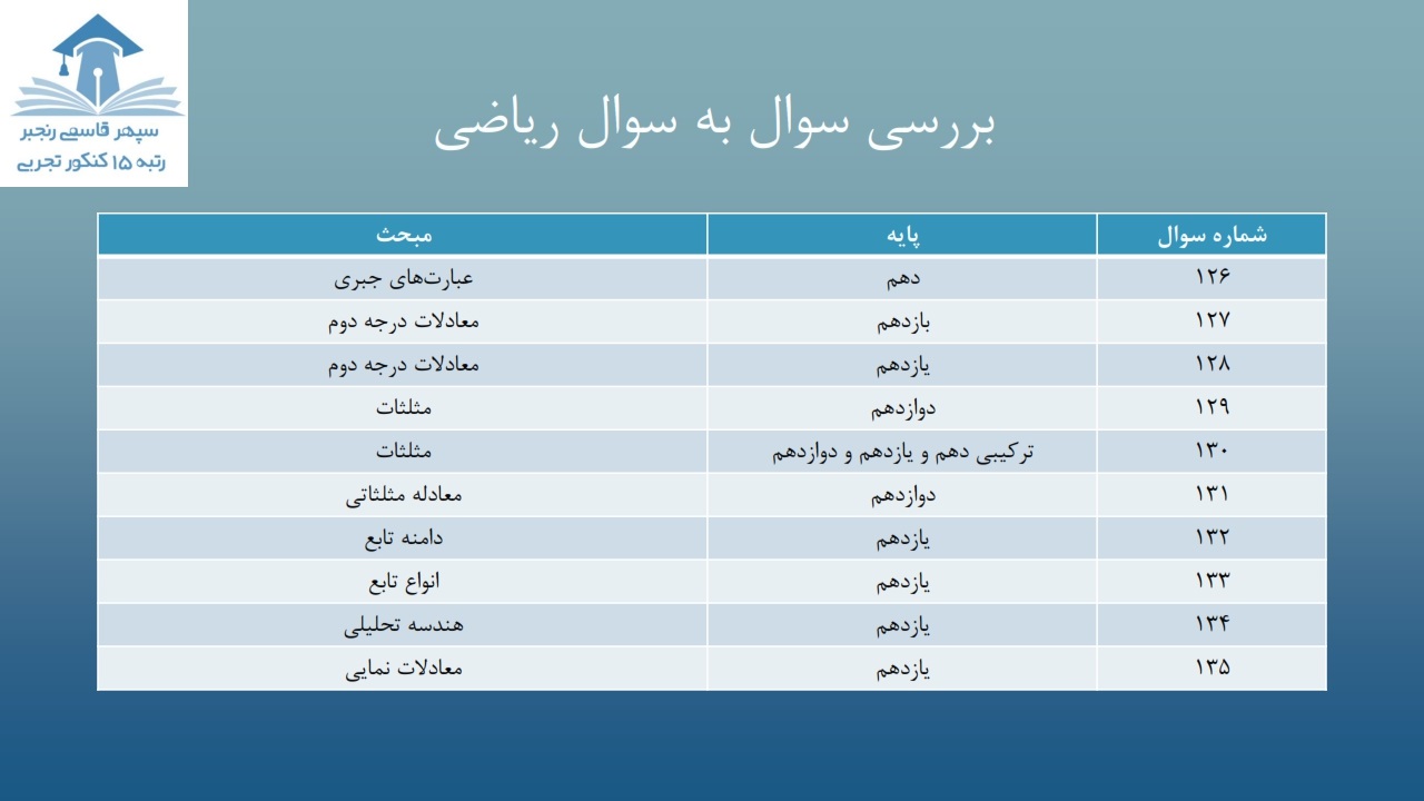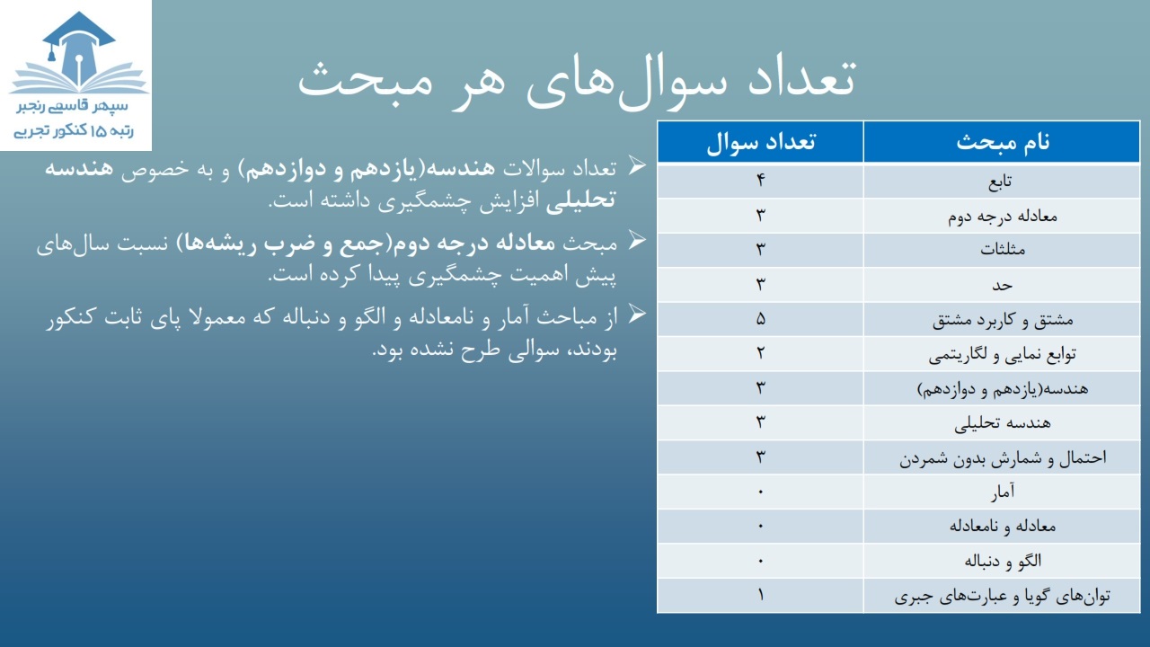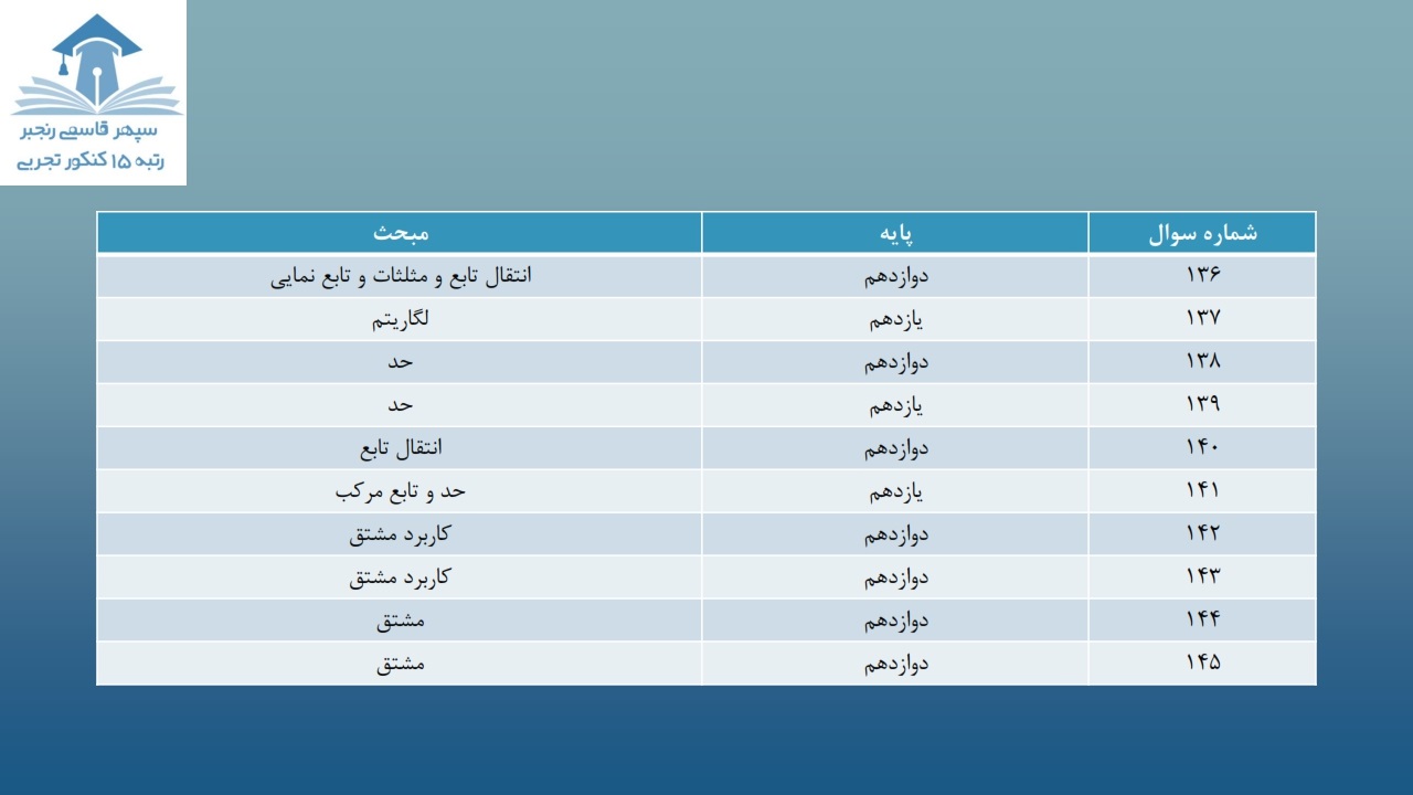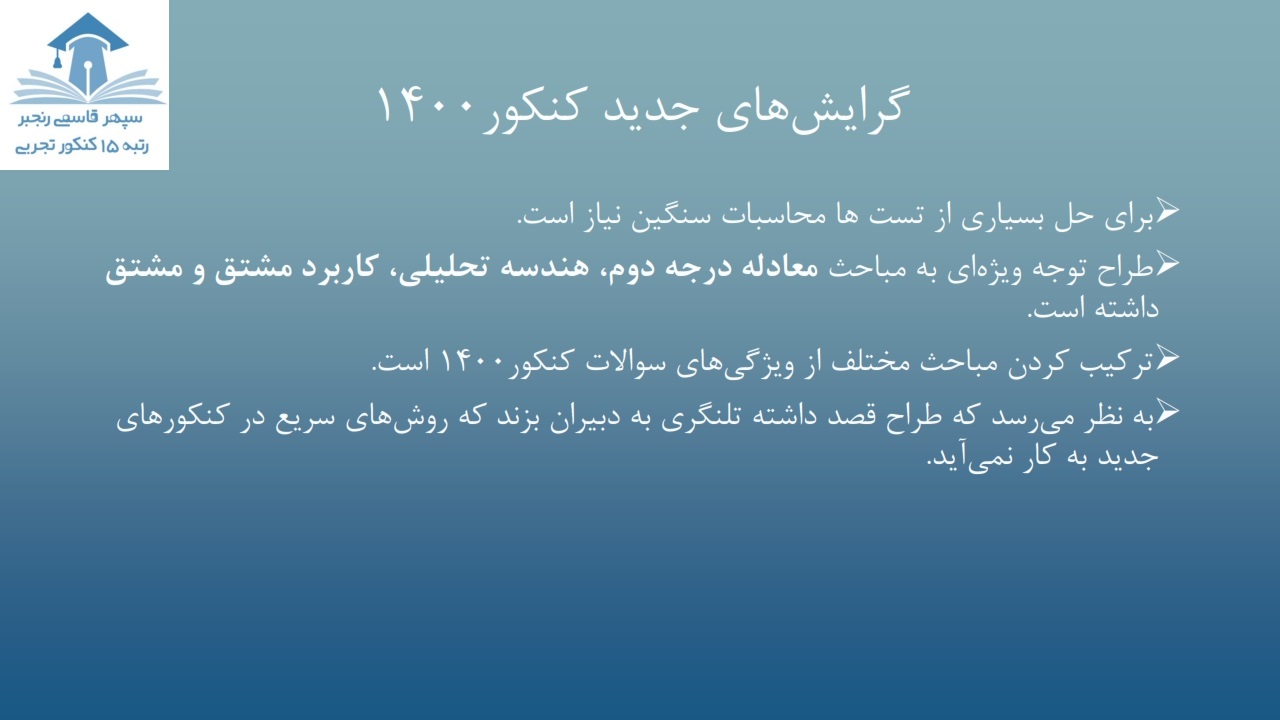 رویکرد درس ریاضی کنکور تجربی سال 1400- سپهر قاسمی رنجبر (رتبه 15 کنکور تجربی 99)