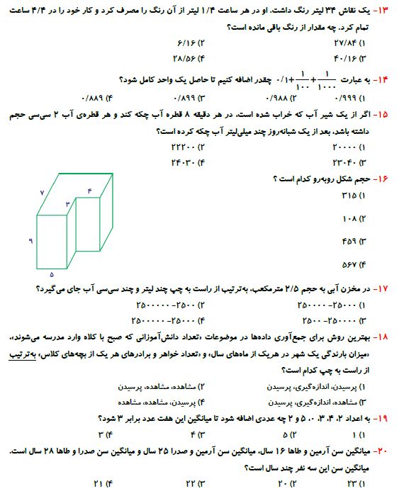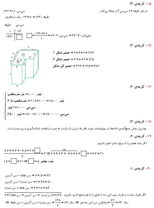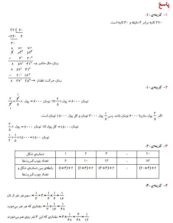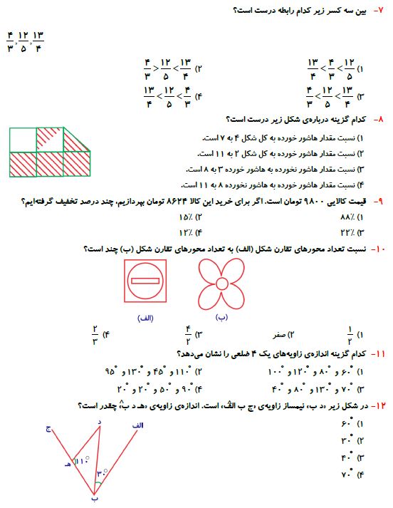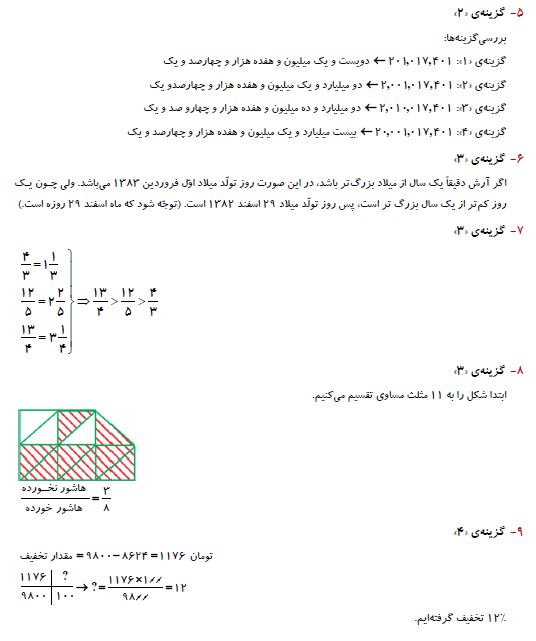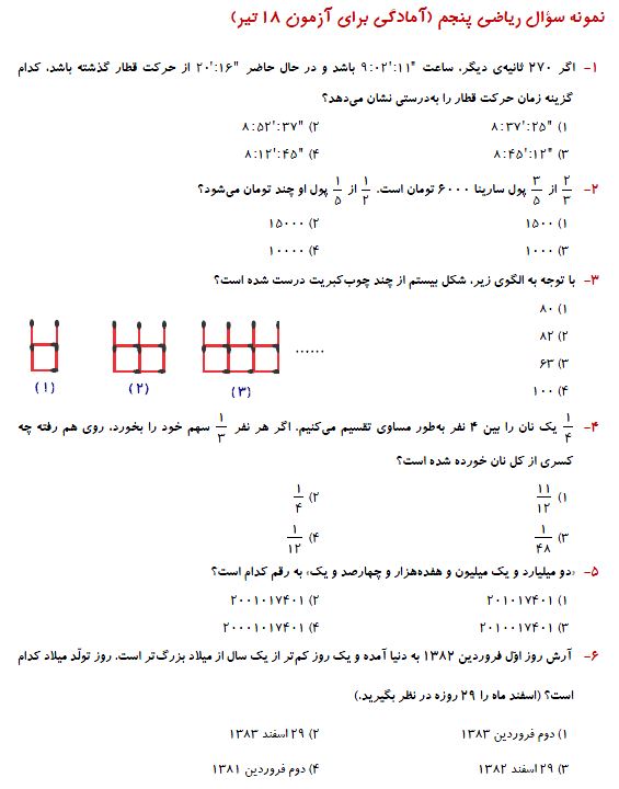 ششمی های عزیز سلامدر ادامه برای شما 20 سوال ریاضی پنجم دبستان برای آمادگی آزمون 18 تیر به همراه پاسخ تشریحی آورده شده است. موفق باشید.فرزانه خاکپاش - گروه تولید آزمون