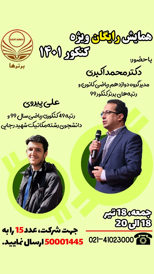 همایش آنلاین ویژه دانش آموزان دوازدهمی (کنکوریهای 1401)، روز جمعه ساعت 18 الی 20، برگزار میشود.