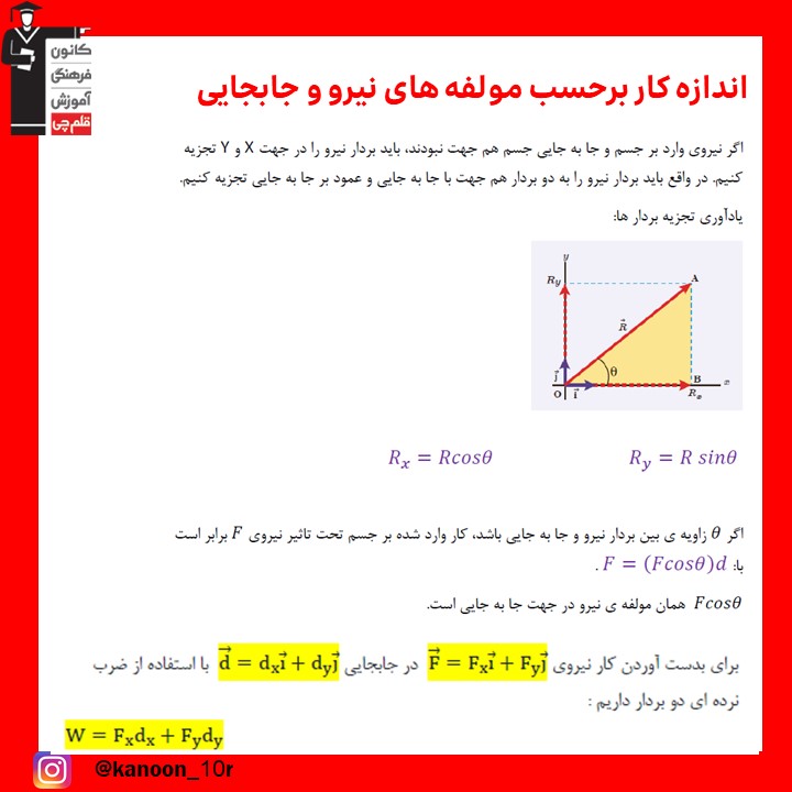 خلاصه نکات اندازه کار برحسب مولفه‌های نیرو و جابجایی-فیزیک دهم