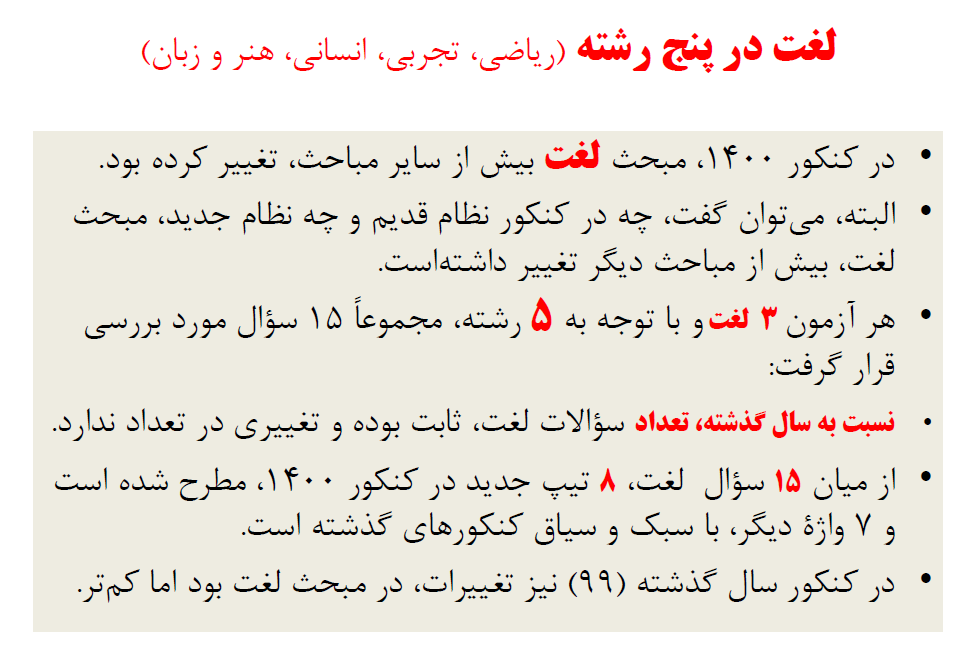 در کنکور 1400، مبحث لغت در فارسی تغییرات زیادی داشت بهتر است برای تسلط بیشتر بر این مبحث، از همین ابتدا برنامهریزی کنید.
