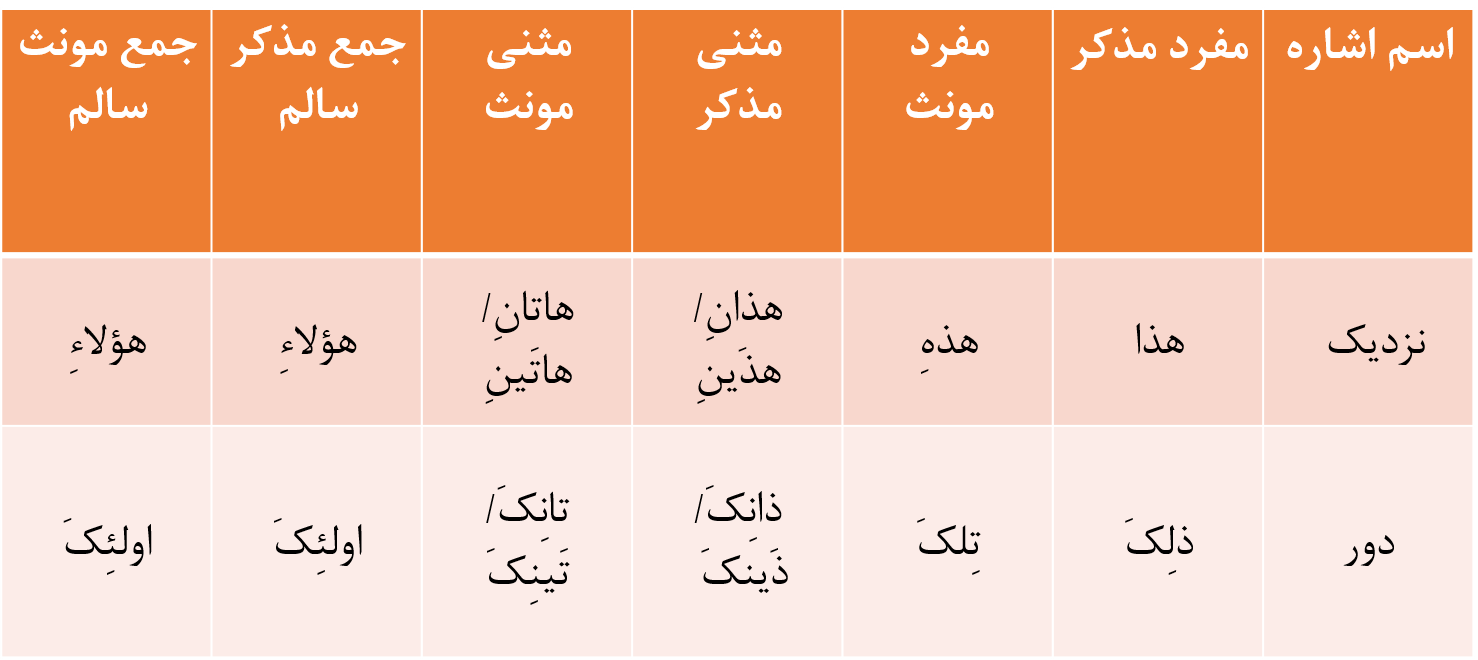 اسامی اشاره به دو دسته نزدیک و دور تقسیم می شوند.