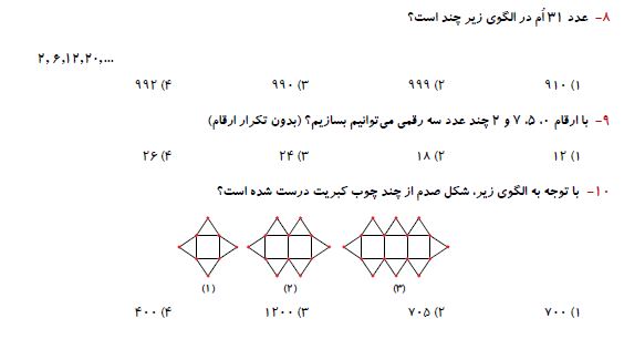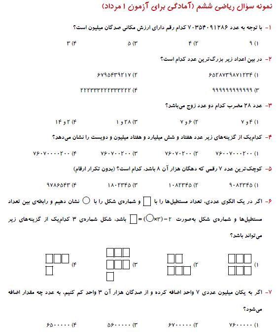 ششمی های عزیز سلامدر ادامه برای شما 10 سوال ریاضی ششم برای آمادگی آزمون 1 مرداد به همراه پاسخ تشریحی آورده شده است. موفق باشید.فرزانه خاکپاش - گروه تولید آزمون