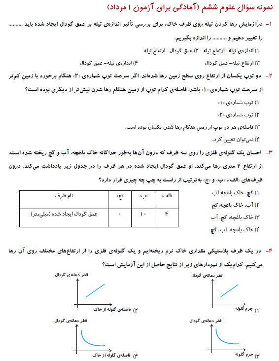 ششمی های عزیز سلامدر ادامه برای شما 10 سوال علوم ششم برای آمادگی آزمون 1 مرداد به همراه پاسخ تشریحی آورده شده است. موفق باشید.فرزانه خاکپاش - گروه تولید آزمون