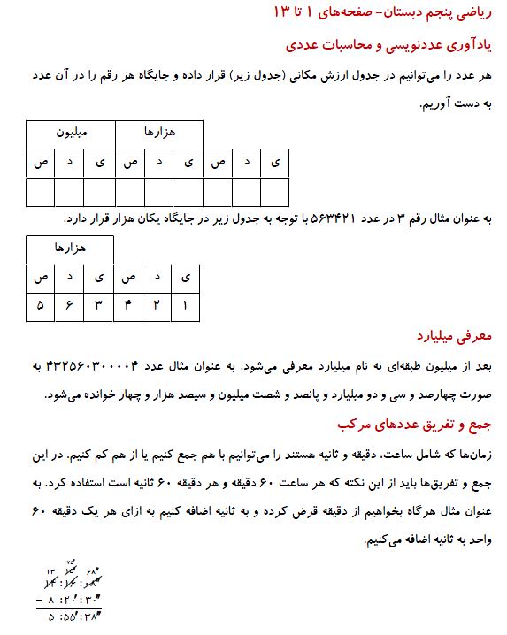 پنجمی های عزیز سلامدر این مطلب درسنامه ای از بخش اول فصل اول کتاب ریاضی پنجم را برای آمادگی در آزمون 1 مرداد می توانید مطالعه کنید:موفق باشید.فرزانه خاکپاش - گروه تولید آزمون