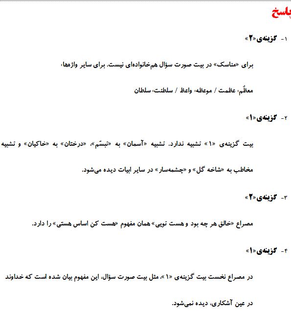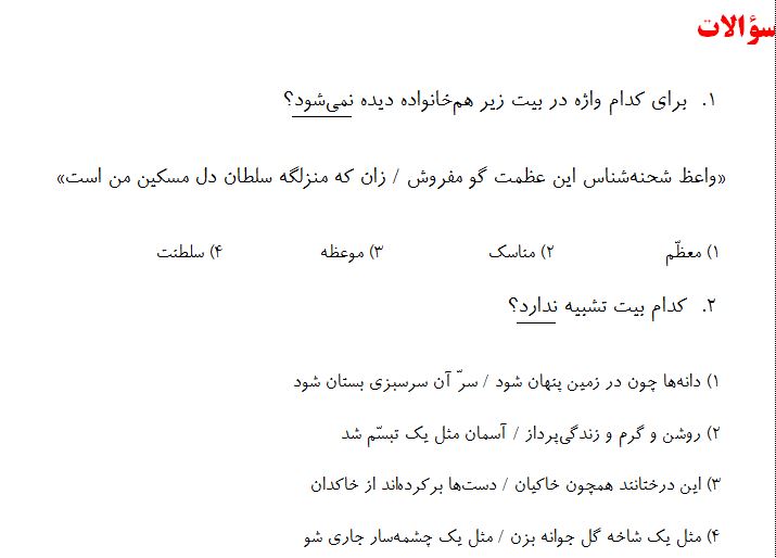 نمونه سؤالات درس فارسی را در این بخش قبل از آزمون پاسخ دهید.