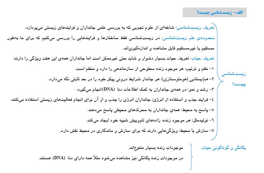 تعریف زیستشناسی: شاخهای از علوم تجربی که به بررسی علمی جانداران و فرایندهای زیستی میپردازد. محدودهی علم زیستشناسی: در زیستشناسی فقط ساختارها و فرایندهایی را بررسی میکنیم که برای ما بهطور مستقیم یا غیرمستقیم قابل مشاهده و اندازهگیریاند.