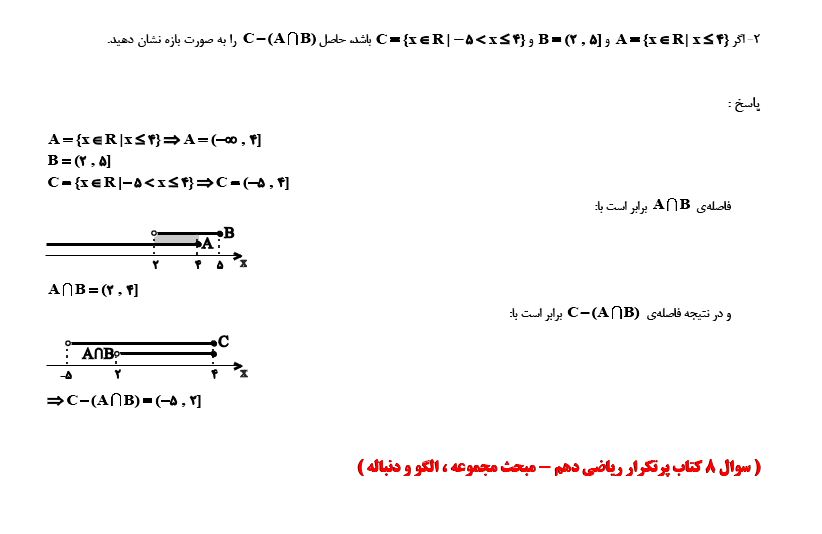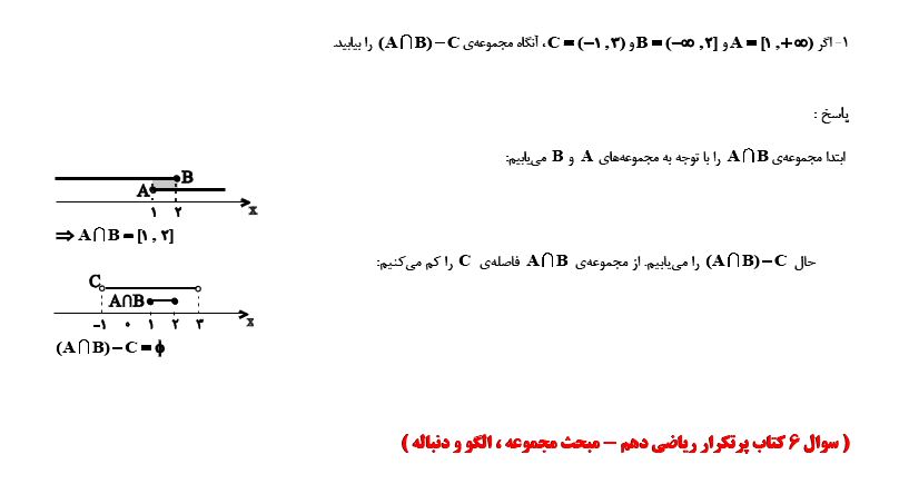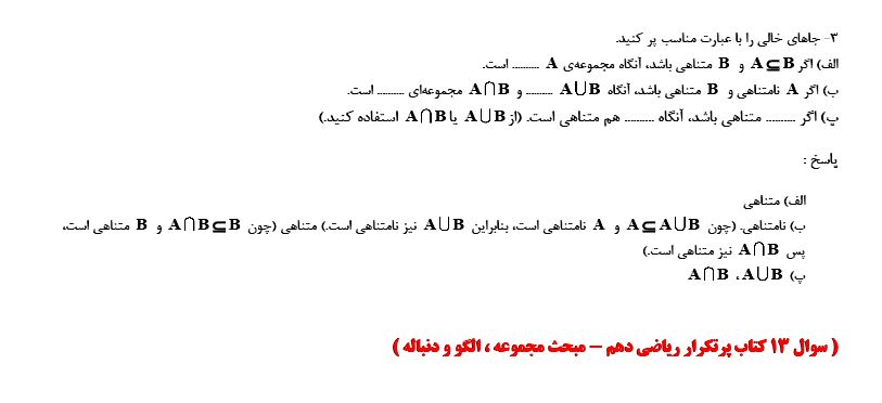 برای آمادگی بیشتر در این مطلب 4 سوال از کتاب پرتکرار ریاضی دهم ، مبحث مجموعه ، الگو و دنباله آمده است ، برای تمرین بیشتر می توانید به کتاب پرتکرار ریاضی دهم مراجعه کنید.