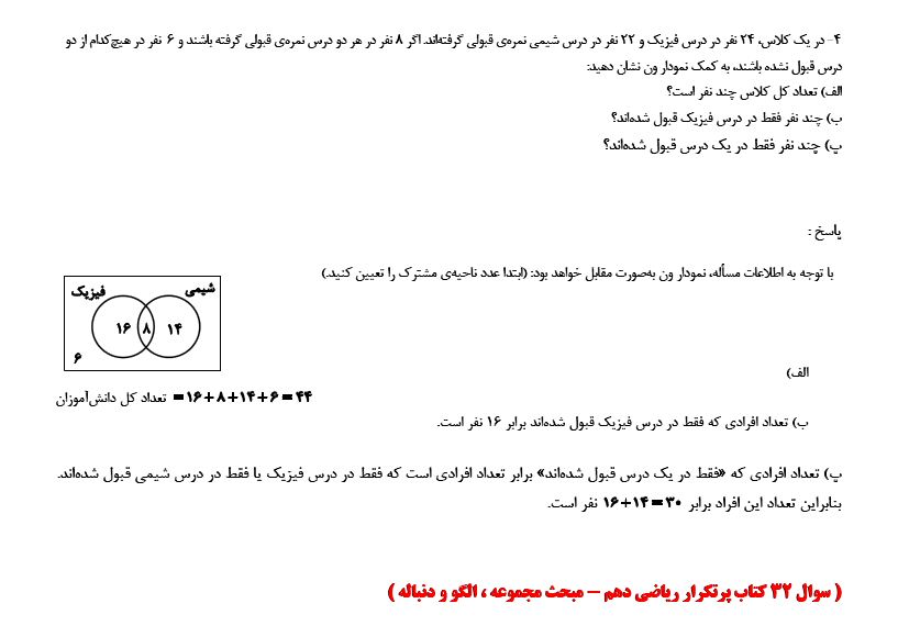 کتاب پرتکرار ریاضی دهم - 4 سوال ازمباحث ویژه آزمون 1 مرداد