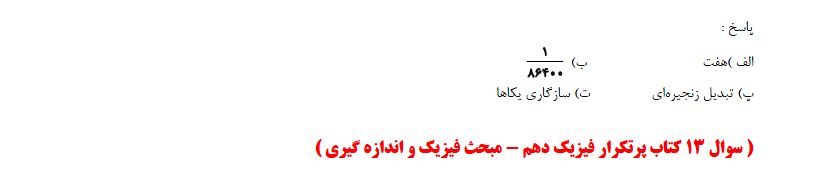 برای آمادگی بیشتر در این مطلب 4 سوال از کتاب پرتکرار فیزیک دهم ، مبحث فیزیک و اندازه گیری آمده است ، برای تمرین بیشتر می توانید به کتاب پرتکرار فیزیک دهم مراجعه کنید.