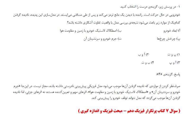 کتاب پرتکرار فیزیک دهم - 4 سوال ویژه آزمون 1 مرداد