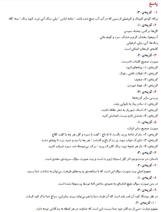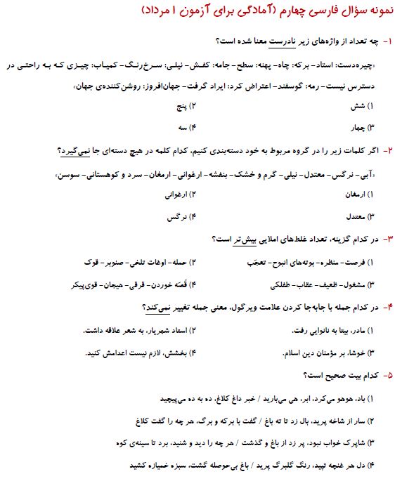 پنجمی های عزیز سلامدر ادامه برای شما 10 سوال فارسی چهارم برای آمادگی آزمون 1 مرداد به همراه پاسخ تشریحی آورده شده است. موفق باشید.فرزانه خاکپاش - گروه تولید آزمون