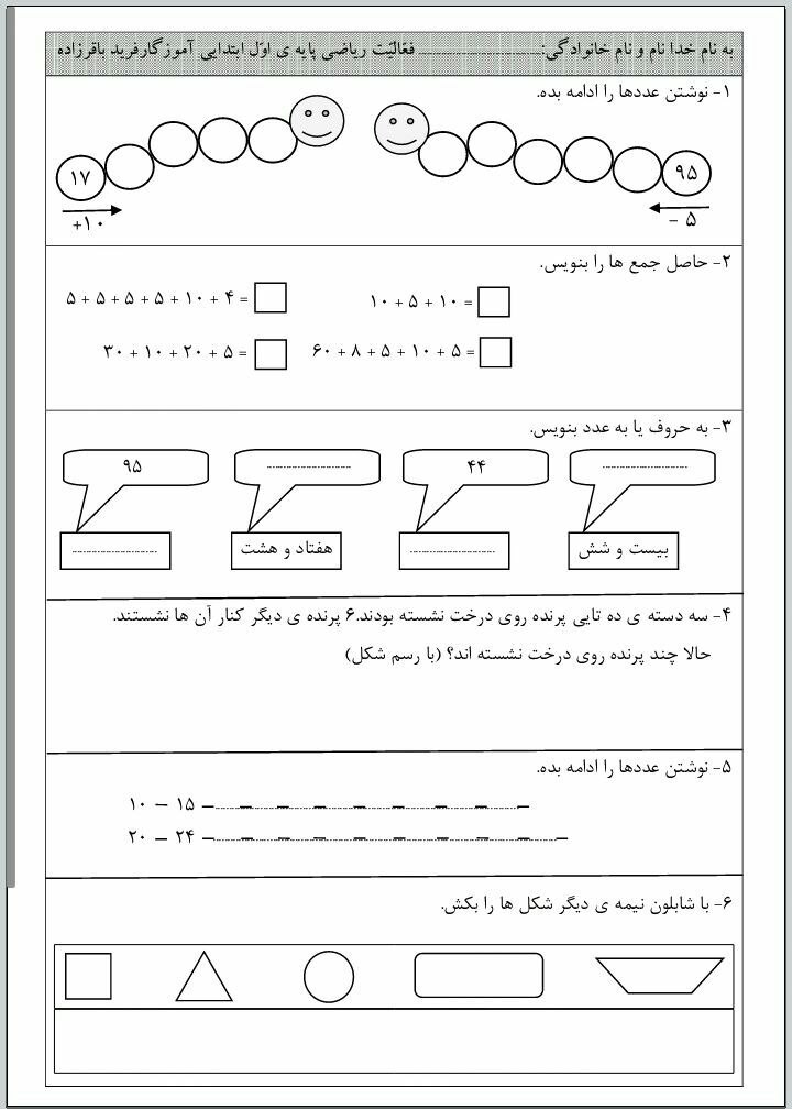 در سال اول دبستان الگویابی از مباحث مهم است. الگویابی هم به صورت شمارش رو به جلو و هم به صورت شمارش رو به عقب میباشد.