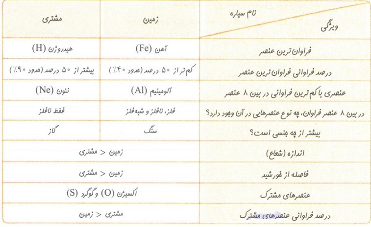 مقایسه عناصر موجود در سیاره های مشتری وزمین