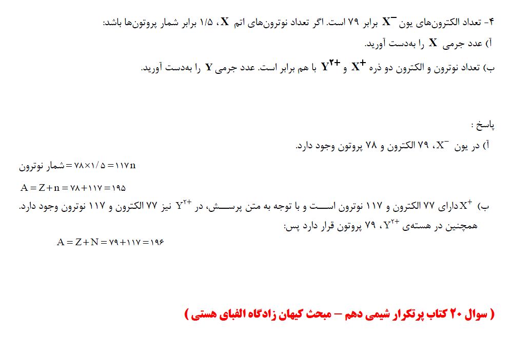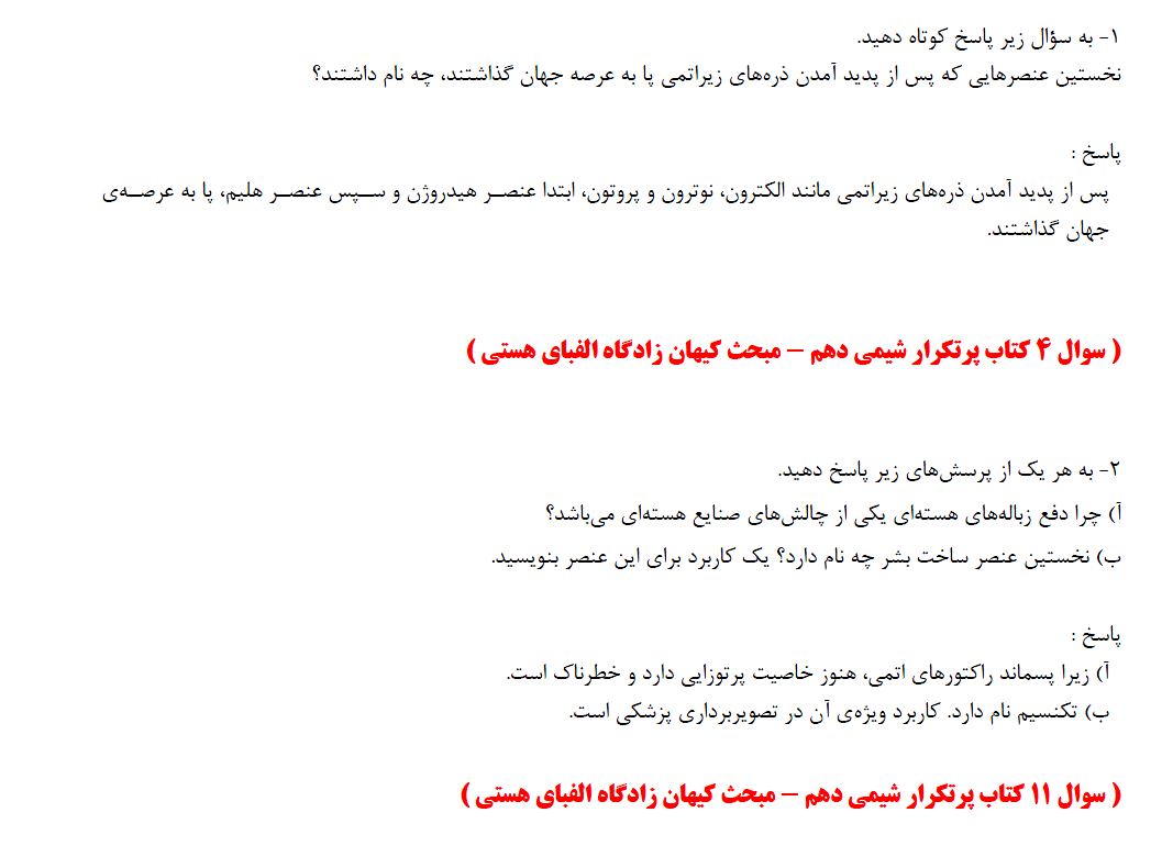 دهمی های عزیز سلام برای آمادگی بیشتر در این مطلب 4 سوال از کتاب پرتکرار شیمی دهم ، مبحث کیهان زادگاه الفبای هستی آمده است ، برای تمرین بیشتر می توانید به کتاب پرتکرار شیمی دهم مراجعه کنید.