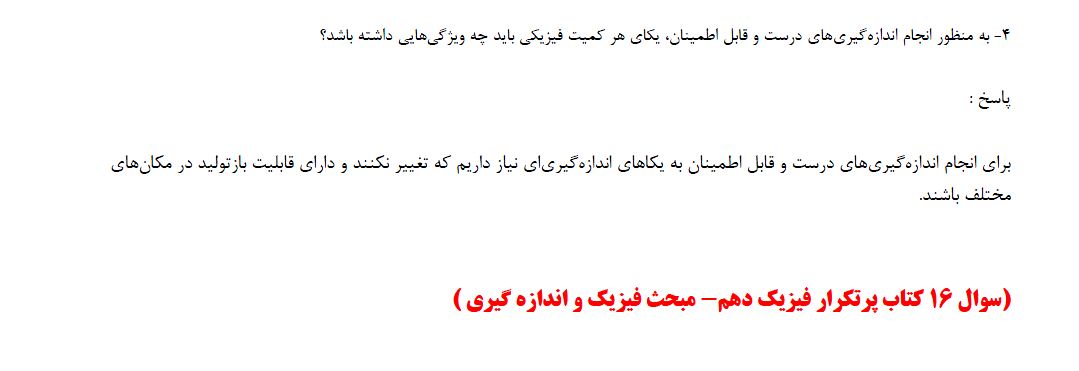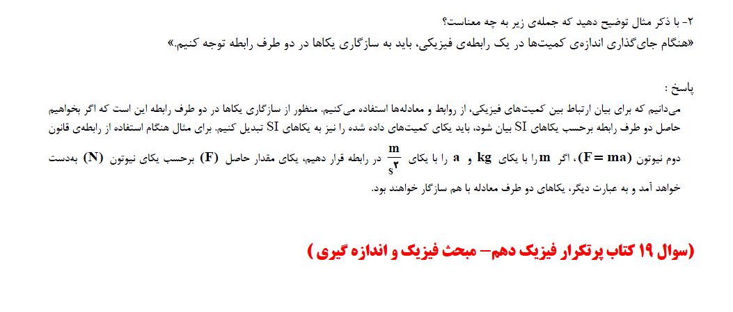 برای آمادگی بیشتر در این مطلب 4 سوال از کتاب پرتکرار فیزیک دهم ، مبحث فیزیک و اندازه گیری آمده است ، برای تمرین بیشتر می توانید به کتاب پرتکرار فیزیک دهم مراجعه کنید.