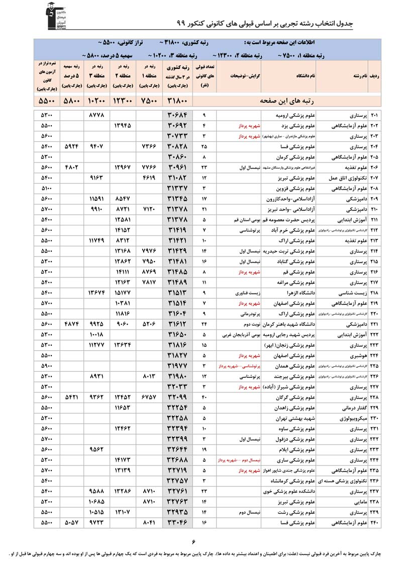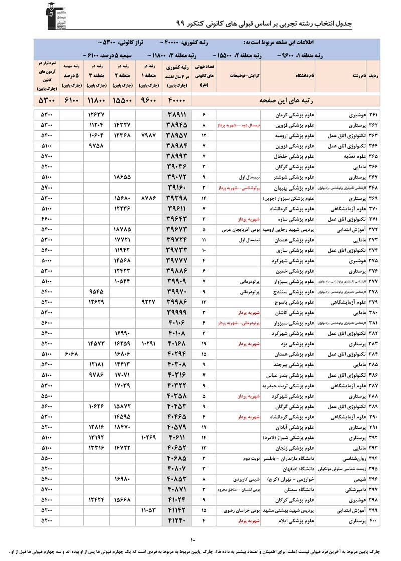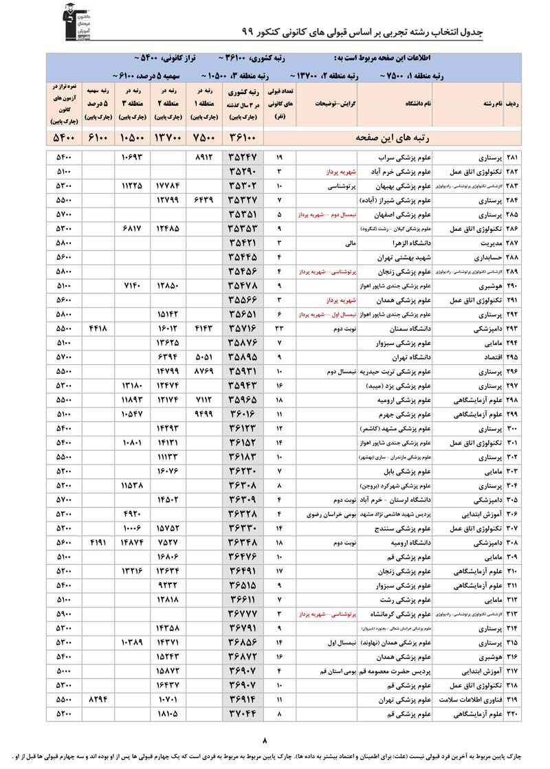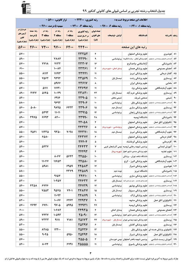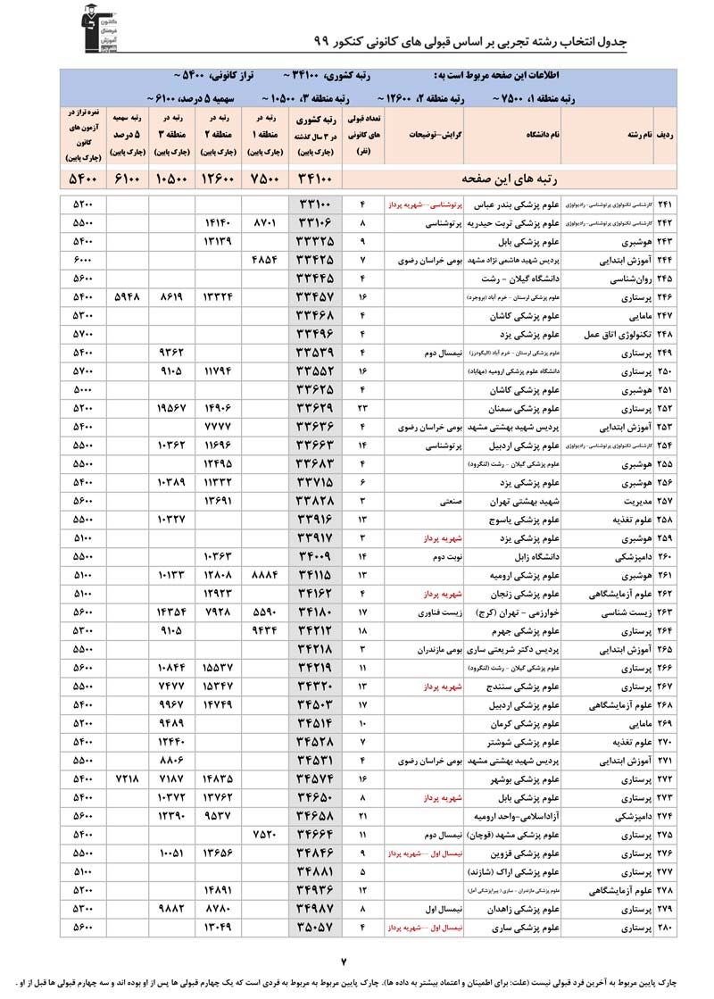 50 رشته را هم از صفحه های آخر در حد کف قابل قبول خودتان انتخاب کنید . ( کف قابل قبول یعنی آخرین رشته هایی که ترجیح می دهید امسال انتخاب کنید ویک سال پشت کنکور نمانید.)