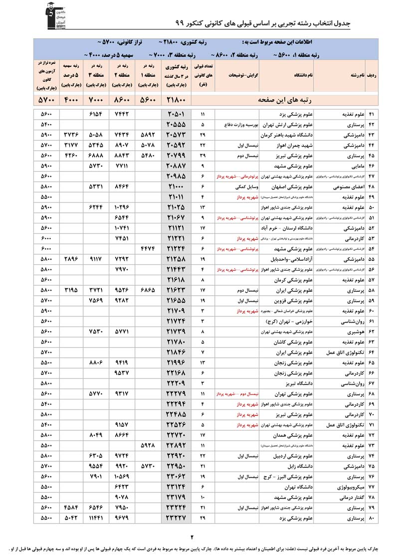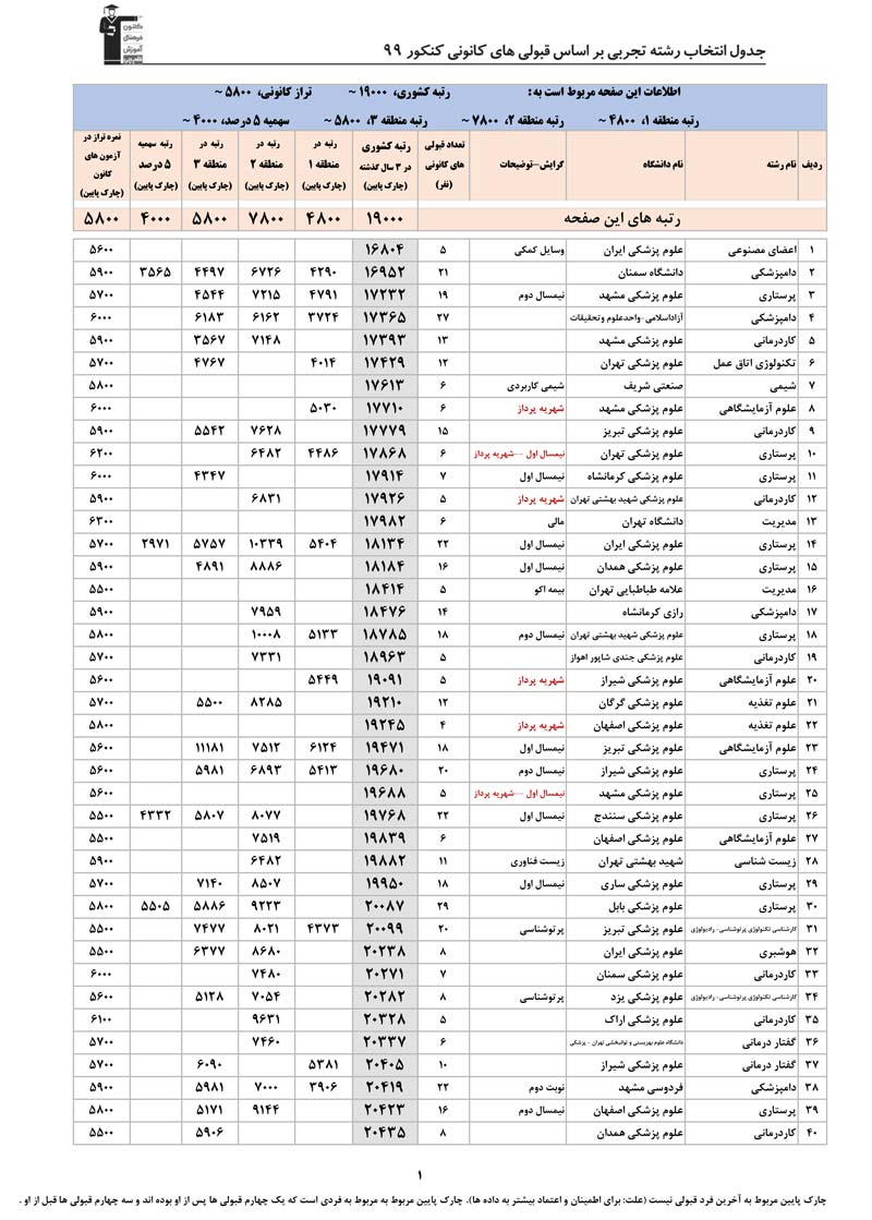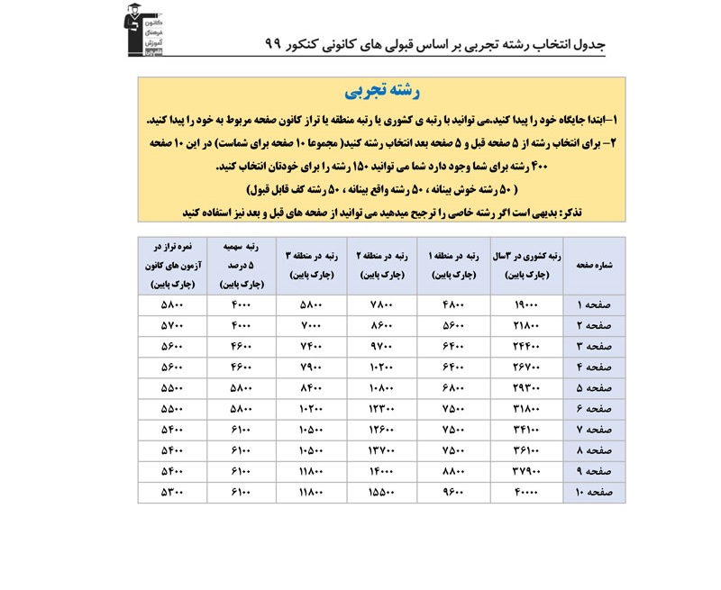 در جدول های زیر رشته های قبولی دانش اموزان کانون در کنکور ۹۹ را مشاهده می کنید.