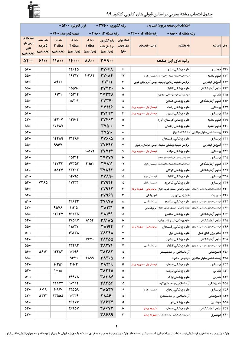 با این جدول ها به سادگی می توانید انتخاب رشته خود را اغاز کنید.
