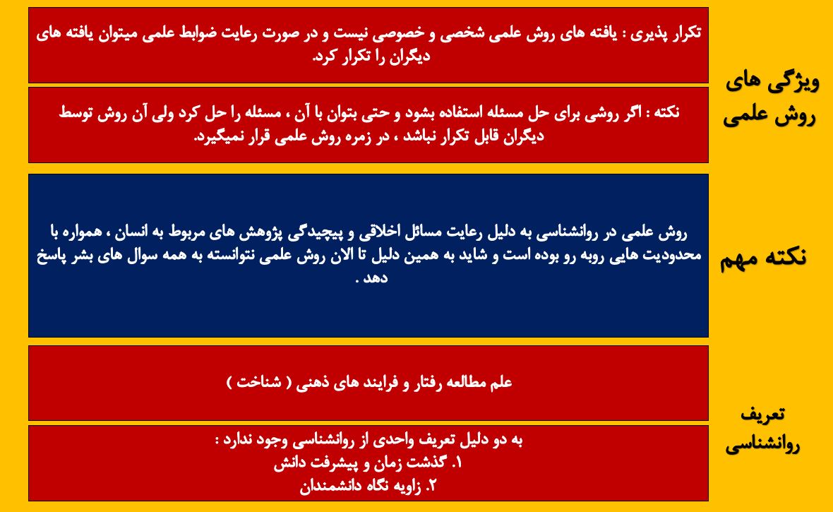 روش علمی : از روش تجربی استفاده میکند/ روشی است عینی و قابل تکرار/ روش علمی روش موردنظر روانشناسان است