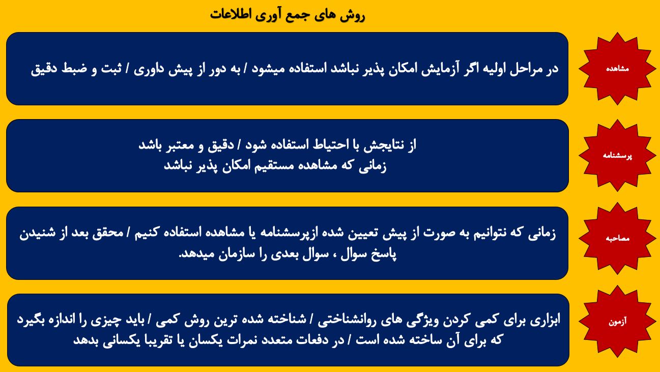 مصاحبه ساختاریافته : با بله یا خیر است / بر پرسشنامه ترجیح دارد / شبیه پرسشنامه است / در همه پرسی ها استفاده میشود.