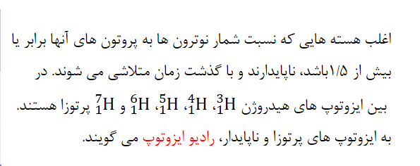 نکته: ایزوتوپ ها خواص شیمیایی یکسانی دارند ولی برخی خواص فیزیکی وابسته به جرم آن ها مانند چگالی متفاوت است.