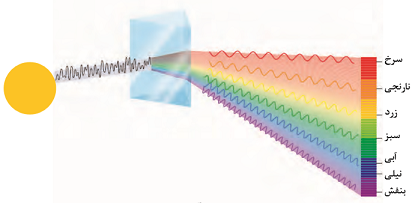 نکته: میزان شکست نور با طولموج رابطه ی عکس دارد، مثلا شکست نور بنفش از نور قرمز بیش است.