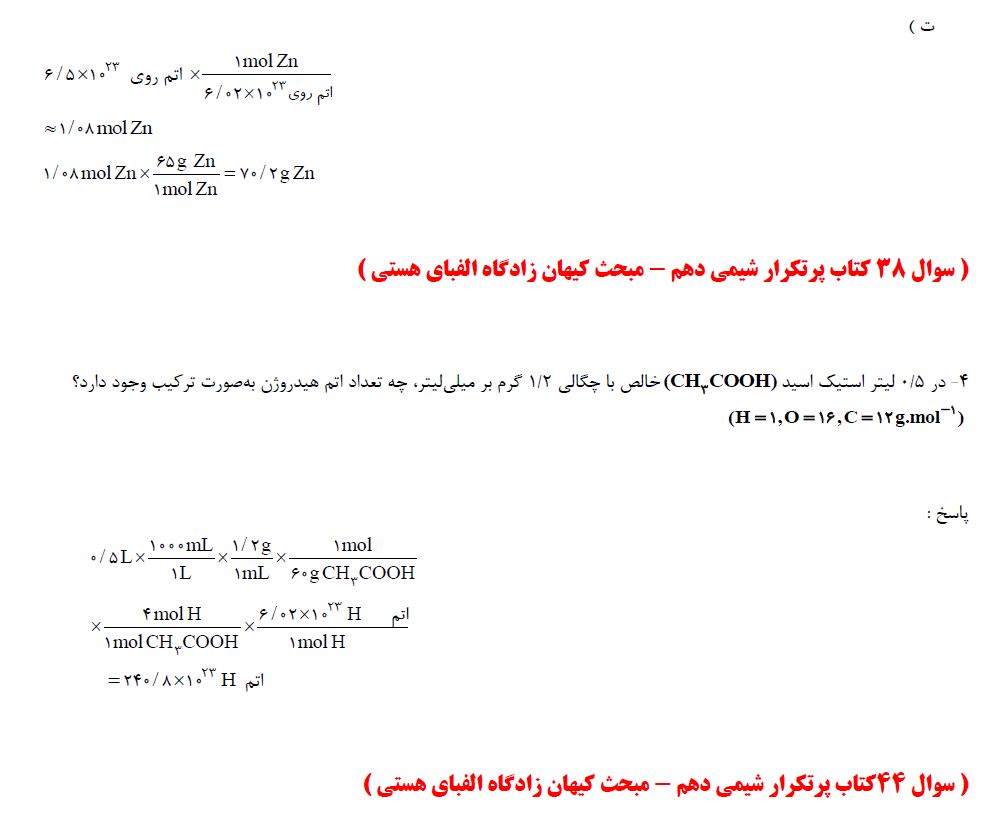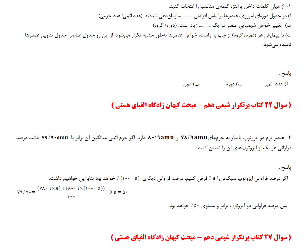 کتاب پرتکرار شیمی دهم - 4 سوال ویژه آزمون 15 مرداد