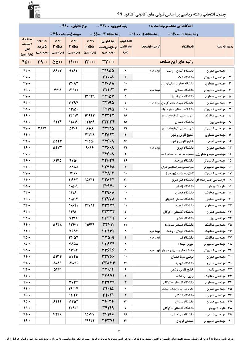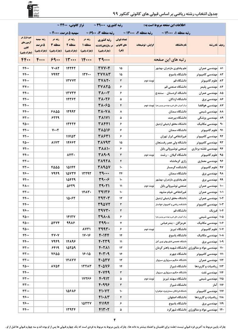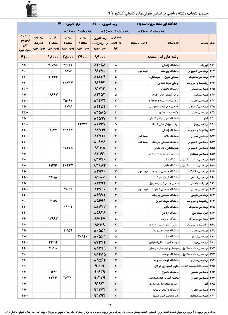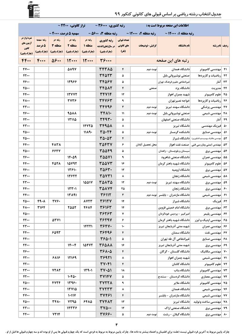 در جدول های زیر رشته های قبولی دانش اموزان کانون در کنکور ۹۹ را مشاهده می کنید.