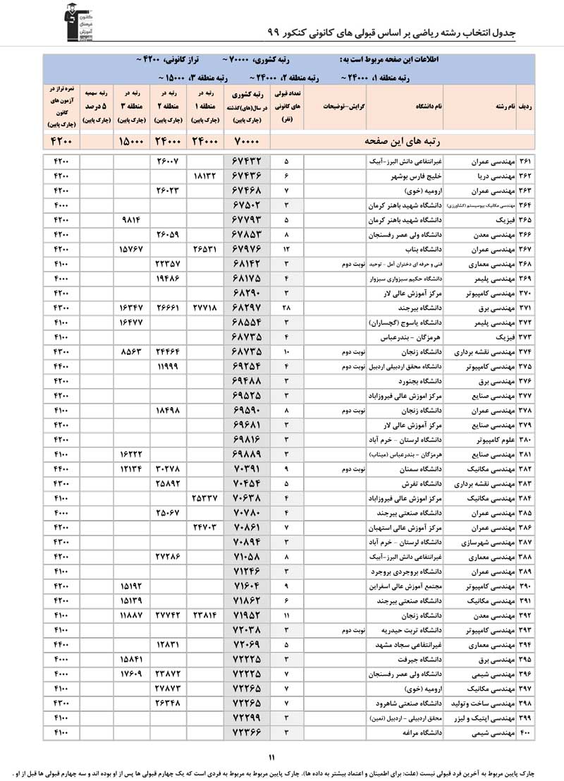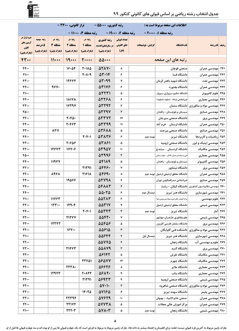 50 رشته را هم از صفحه های آخر در حد کف قابل قبول خودتان انتخاب کنید . ( کف قابل قبول یعنی آخرین رشته هایی که ترجیح می دهید امسال انتخاب کنید ویک سال پشت کنکور نمانید.)